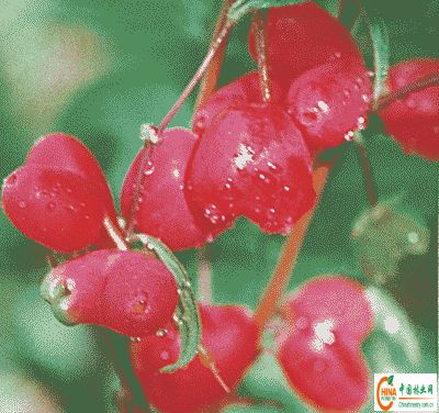 杈把果植株平均高1-2米,叶为对生单叶,长披针形,花着生于幼枝基部苞腹内,具芳香;果实为合生果,形状为罕见的分杈状,故学名杈把果,又因果实红艳,味美无核,亦名无核樱桃。平均单果重2.5克左右,果味浓甜芳香,含糖量高于刺梨,沙棘和猕猴桃,而含酸量较低,糖酸比高达39:1.维生素c及钙、铁、磷、锌等矿质元素也高于一般水果,尤其磷含量几乎是当前已报道的水果中最高的。果汁用于美容,美发,效果颇佳。