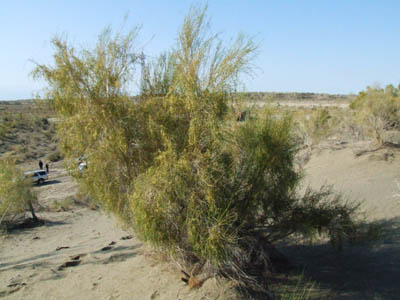 Haloxylon Persicum Bunge ex Boiss. Et Buhse 藜科 Chenopodiaceae 落叶小乔木,高1-5m。树皮灰白色。叶鳞片状。花黄色,成对或单生于二年生枝侧生短枝的叶腋。胞果淡黄褐色。分布于新疆北部,生于海拔300-500m处的半流动沙丘上。伊朗、阿富汗和前苏联也有分布。典型的荒漠植物及优良固沙植物。国家三级保护渐危种。