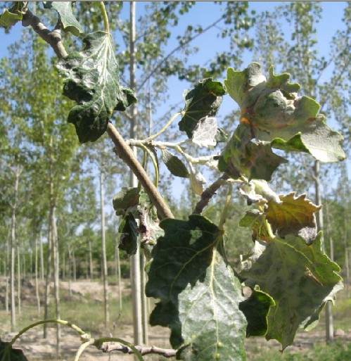 3.培养无毒苗:选择抗病品种育苗,在育苗过程中,加强经营管理,一旦发现病苗,及时剔除烧毁。我国各地栽培的杨树品种均很抗病,如毛白杨、小叶杨、青杨、北京杨、小黑杨等;从国外引进的杨树品种中,西玛杨也具有较高的抗病性。