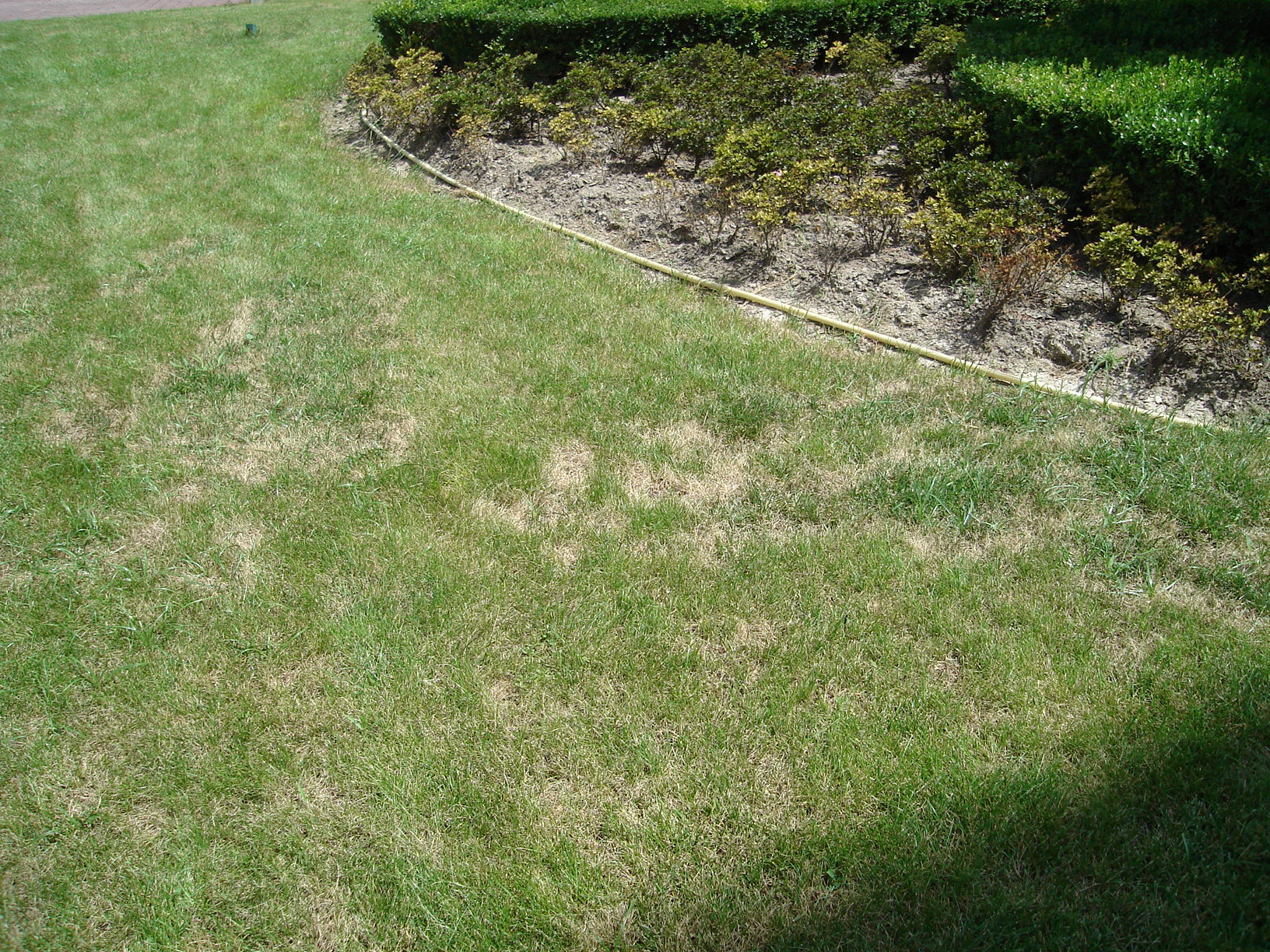 我们这的高羊矛草坪在6月份时候经常下雨草比较深.然后出现下面的情况.我看过过了没有虫.草在那时有点黄.现在出现部分死亡.各位专家能否帮我看看怎么办.是什么原因导致的.谢谢