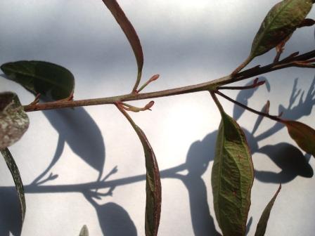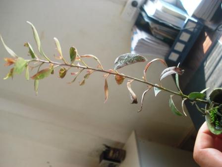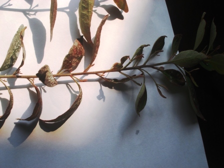 桉树出现连片植株叶色紫红、顶梢枯死、侧枝丛生等现象。经实地调查,初步诊断为桉树红叶枯稍病。桉树红叶枯稍病是一种生理病害,主要是严重缺乏植物正常生长结籽必须的微量元素之一“硼”引起。 诊断桉树红叶枯梢病的主要表象依据是:1.叶色出现浅红色斑点,直至大量全叶紫红,叶片肥厚,向内卷曲;2.顶梢纤弱、呈褐色甚至枯萎死亡,质脆易于撕裂;3.腋芽萌动抽生新枝,且纤弱向下弯曲,又重复以上症状,严重时整枝呈多头丛状灌木型。在砂质或石灰岩地区的土壤中缺B严重,易于出现桉树红叶枯梢病。防治的主要补救方法是补充土壤中的B元素,一般是使用含有效硼11%的硼砂(化学名称为Na2B4O7·10H2O—十水合四硼酸钠),与基肥混合均匀,种植前施用。 缺锌(Zn)症状:桉树缺锌长出的叶很小常称为“小叶病”。新梢严重缩短,致使叶片呈斑簇丛生,称“簇叶”,叶片间隔正常,但叶片变小,有时全树新梢发病,有时发生在局部。 锌是有机酶的组成部分,光和作用合成叶绿素也要有一定锌,缺锌还影响叶绿素形成,叶发生黄化,往往阳坡桉树有缺锌症状,土地缺硼就缺锌。 缺锌比较明显症状是枯叶,早春新梢顶端轮生的小叶,有花斑,新梢其它部分很可能没有叶,似光枝,以后受害枝下部出现新嫩枝,叶开展时生长正常,以后逐步变窄变长,也出现花斑,受害第一年可能出现枯梢,花芽少、果实小,畸形。缺锌不太严重的时候顶端枝条还要长尖绿的叶子或杂色的叶子。