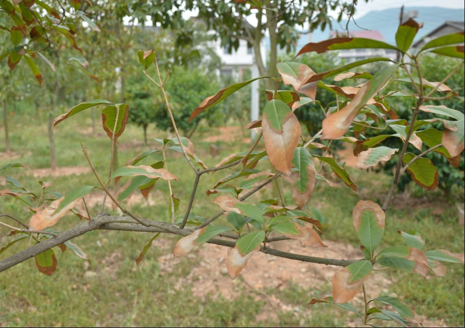 该病病原菌多从叶缘、叶尖端侵入,发生在叶片的叶缘和叶尖。发病初期,叶片上产生淡褐色小点,逐步扩大成圆形或不规则形的病斑,后扩大为近圆形或不规则形灰褐色大斑,边缘为深褐色。枯斑病发生在7至11月份,在环境条件不好的棚室内全年可发生。病菌以分生孢子借风、水传播侵染。高温、高湿、通风不良的环境有利于发病。植株生长衰弱时及越冬后的老叶及植株下部的叶片发病较重。 防治措施 首先要减少侵染来源。秋季彻底清除病落叶。 其次加强栽培管理。选择肥沃、排水良好的土壤或基质栽植桂花;增施有机肥及钾肥;栽植密度要适宜,以便通风透光,降低叶面湿度减少病害的发生。 科学使用药剂防治。发病初期喷洒1:2:200倍的波尔多液,以后可喷50%多菌灵可湿性粉剂1000倍液或50%苯来特可湿性粉剂1000至1500倍液。重病区在苗木出圃时要用1000倍的高锰酸钾溶液浸泡消毒。